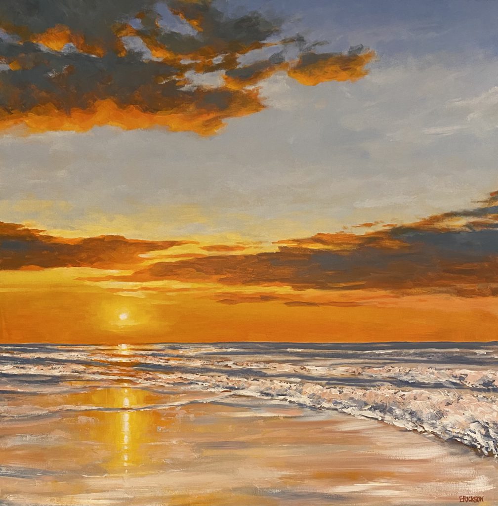 Currently, John Erickson appreciates the process of creating art in his free time and being present in the moment while painting. He is a self-taught artist — therefore his painting style changes with time and fresh exploration on the canvas. Inspired by the beauty of nature, John often paints ocean scenes, salt marshes, and mountain landscapes. He hopes that his artwork is approachable and able to produce joy wherever it is displayed. His original work can be viewed and purchased at ArtSouce FineArt in Raleigh, NC. Below is a sample of his most recent paintings.